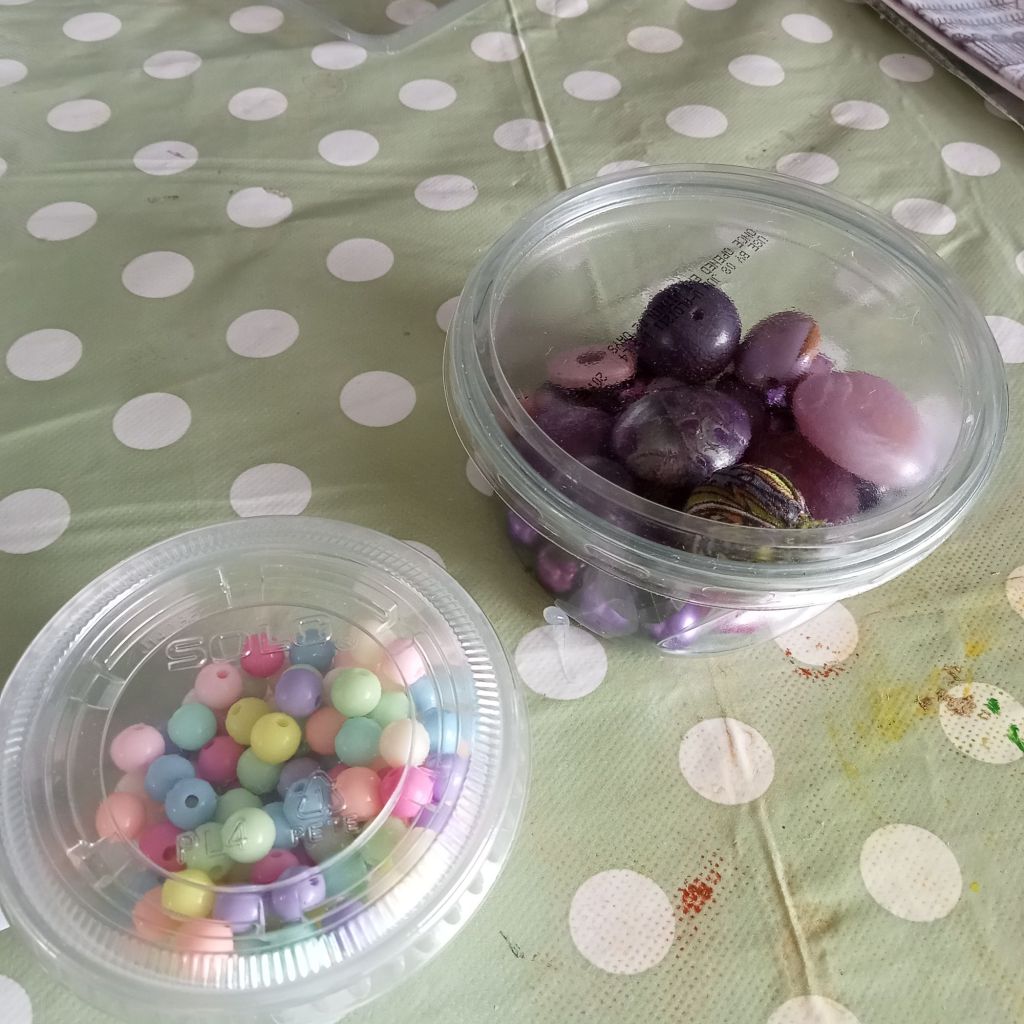 I buy costume jewellery from charity shops and car boots and reuse the beads. It’s much cheaper than buying new. You can also reuse the glass and chains for jewellery making.