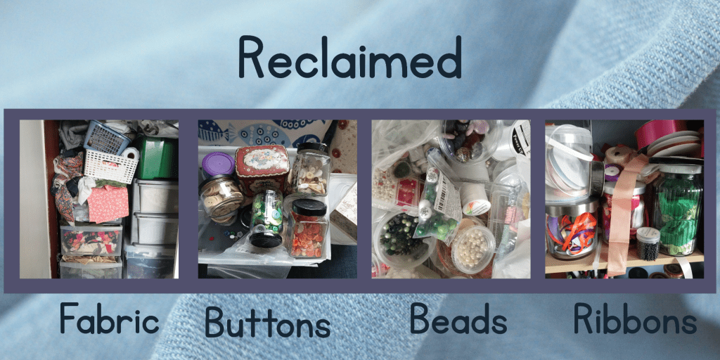I’ve always tried to reuse and recycle and I’m notoriously mean when it comes to spending money! Packaging, paper, fabric, buttons, beads, even cushion stuffing – there is so much that you can save from landfill.